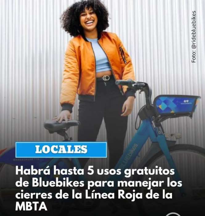 🚲 Para ayudar a los usuarios a manejar los cierres de la Línea Roja del MBTA la próxima semana, habrá disponible desbloqueos gratuitos de Bluebikes.