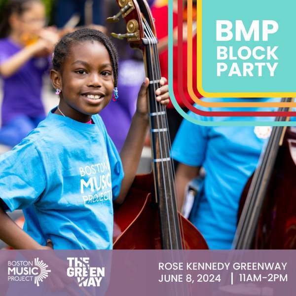Boston Music Project tendrá el 8 de junio de 11 a. m. a 2 p. m. su fiesta anual BMP Block Party en Rose Kennedy Greenway. El evento contará con actuaciones de conjuntos juveniles de BMP, un zoológico de instrumentos y más. [Detalles aquí]