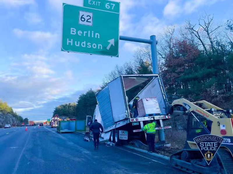 🚛 La Policía de Massachusetts reportó un accidente que ocurrió hoy martes 5 de diciembre a las 5:30 a.m. en la 495 norte en la rampa hacia la Ruta 62 en Bolton. Los agentes respondieron a un accidente de camión con remolque. El remolque transportaba productos lácteos.