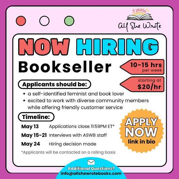 📚 All She wrote Books está contratando un part-time bookseller. Si te interesas, puedes revisar el perfil, los requisitos y aplicar aquí.