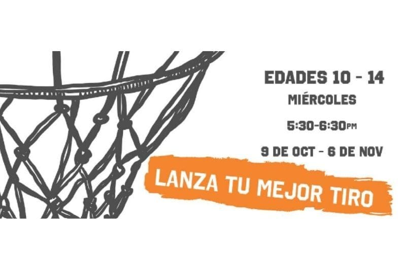 Aprende los fundamentos del baloncesto, estrategias de juego y conceptos de trabajo en equipo. Del 9 de octubre al 6 de noviembre para jóvenes de 10 a 14 años. [Detalles aquí]