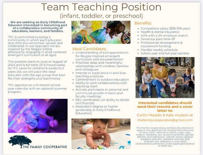 👩🏫 The Family Cooperative está buscando maestros. Si te interesa, puedes revisar los perfiles, los requisitos y aplicar aquí.