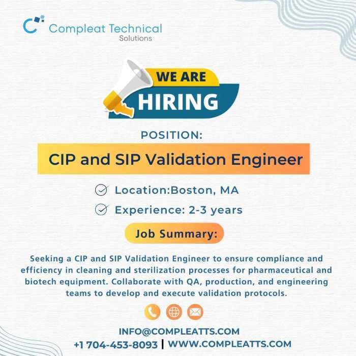 👶 Compleat Technical Solutions buscando un CIP and SIP Validation Engineer. Si te interesa, puedes revisar el perfil, los requisitos y aplicar aquí.