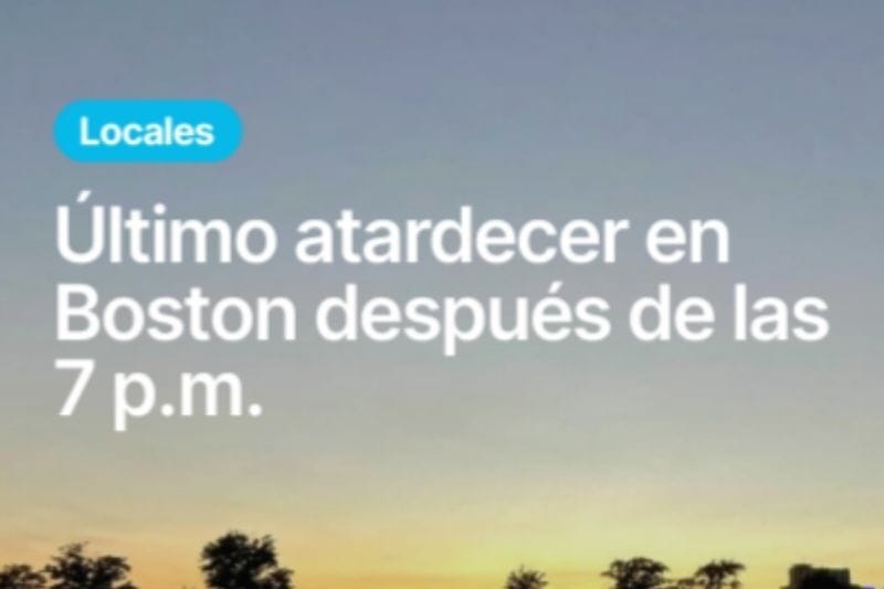 🌇 Hoy, Boston se despide de su último atardecer a las 7 p.m. de este 2024. Con el otoño a la vuelta de la esquina, las tardes se acortan y el sol se oculta cada día unos minutos antes en el horizonte.