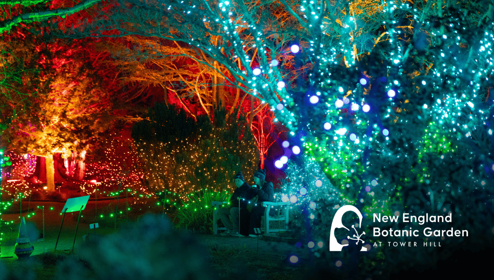 Durante el invierno, el New England Botanic Garden se transforma en un espectáculo de luz y color. Night Lights ofrece una experiencia inmersiva con medio millón de luces, dulces, compras y actividades familiares. Boletos para adultos desde $25 en temporada baja y $27 en temporada alta.