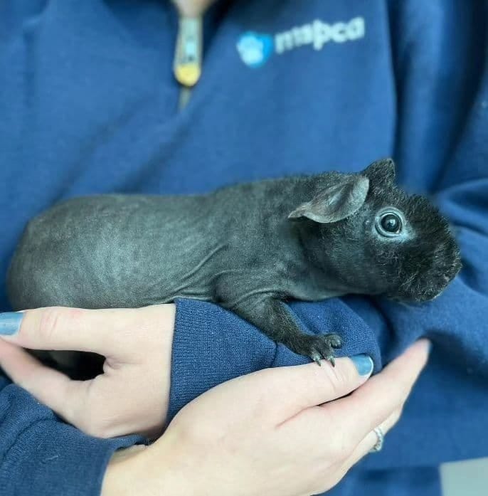 🎀 Esta mañana el MSPCA-Angell recibió de sorpresa una cobaya skinny (un conejillo de indias sin cabello) en perfectas condiciones que dejó su familia para que fuese adoptado. Actualmente están interesados en conseguirle un nuevo hogar.