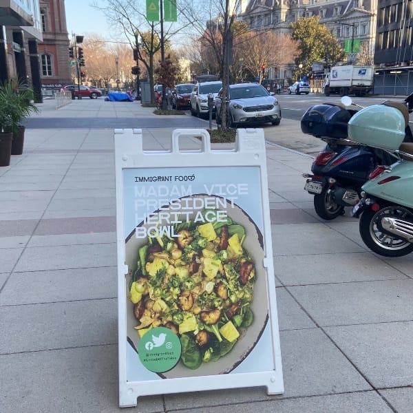 Nuevo plato de Immigrant Food en honor a la Vicepresidenta Kamala Harris a una cuadra de La Casa Blanca. Nos comentan que todavía la VP no lo ha probado.