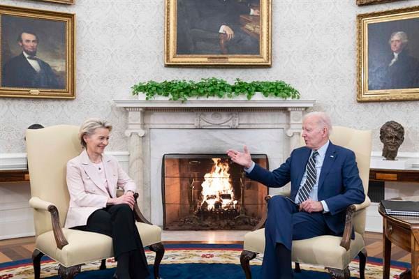 La presidenta de la Comisión Europea, Ursula von der Leyen, visitó Washington y se reunió con Joe Biden para hablar sobre Ucrania, la seguridad energética, la crisis climática y China | Foto: EFE