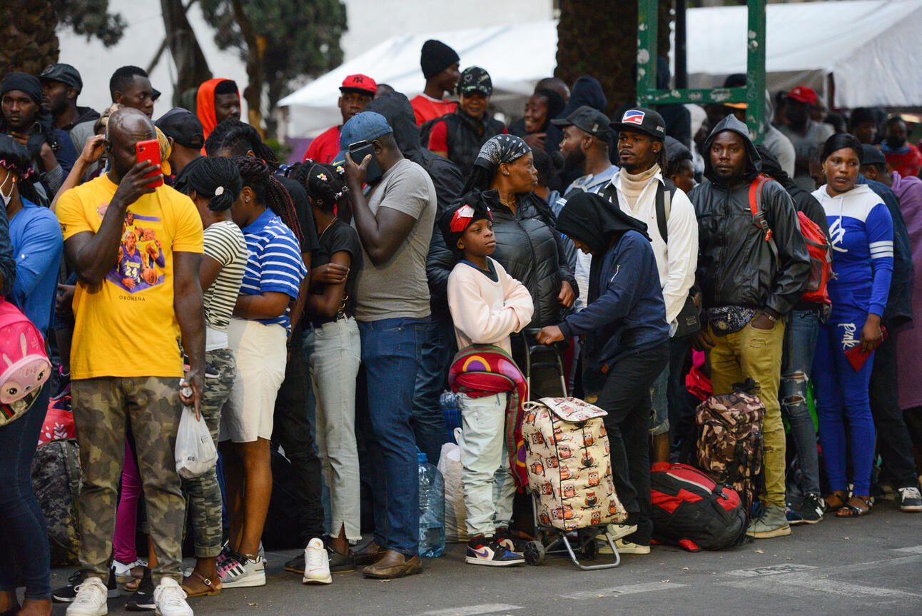 Migrantes hacen fila para ser trasladados a un albergue en la alcaldía de Tláhuac, en la Ciudad de México (México). En un operativo por parte de la Secretaría de Inclusión y Bienestar Social de la capital mexicana, migrantes son trasladados este lunes a un albergue temporal para brindarles ayuda humanitaria. EFE/ Madla Hartz
