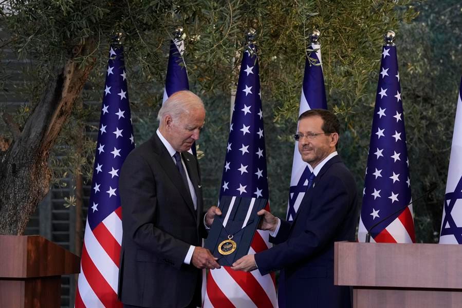 El presidente de Israel, Isaac Herzog, le entregó a Joe Biden la Medalla de Honor Presidencial durante su visita a Jerusalén | Foto: EFE