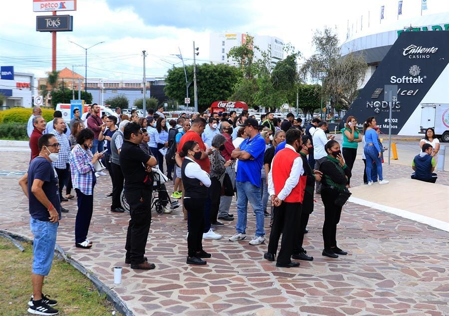 Un sismo de magnitud 7,7 sacudió este lunes el centro de México, con saldo de un muerto, justo en el día de los aniversarios de los terremotos del 19 de septiembre de 1985 y de 2017. Por seguridad, las personas desalojaron los edificios y permanecieron en las calles | Foto: EFE