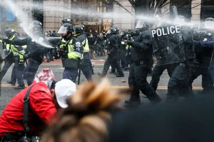 El gobierno de D.C. pagará 1,6 millones de dólares para resolver dos demandas que alegan que la policía detuvo ilegalmente a más de 200 manifestantes en arrestos masivos el día de la inauguración presidencial de Donald Trump en enero de 2017. Foto: The Washington Post