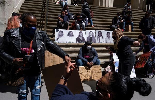 Activistas de la Asociación de Justicia Comunitaria de Mujeres (WCJA) protestan por las condiciones inseguras que enfrentan las mujeres en las instalaciones de la prisión de Rikers Island y piden que cierren esa sede. Foto: EFE