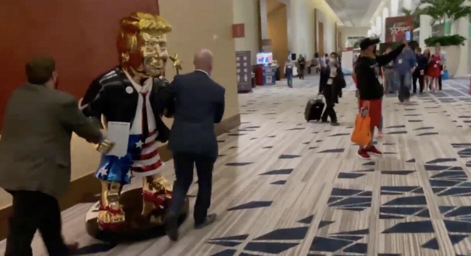 ¿Aparición dorada? En las redes hubo comentarios de todo tipo sobre la estatua de oro de Trump en la CPAC. Lo compartió William Turton