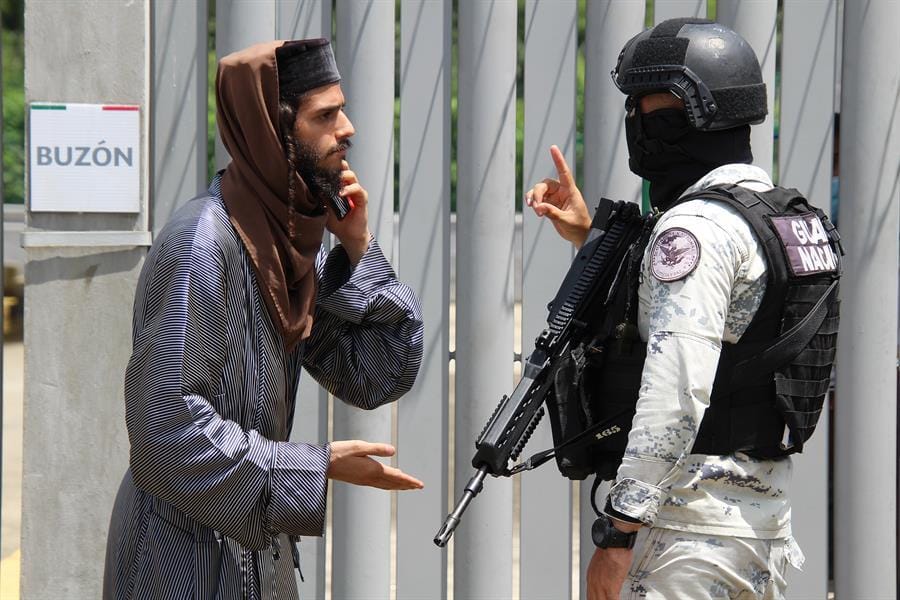 Tras la detención en un operativo migratorio de 19 judíos ultraortodoxos en Tapachula, México, un grupo de la comunidad protestó a las afueras de un centro del Sistema Nacional para Desarrollo Integral de la Familia | Foto: EFE